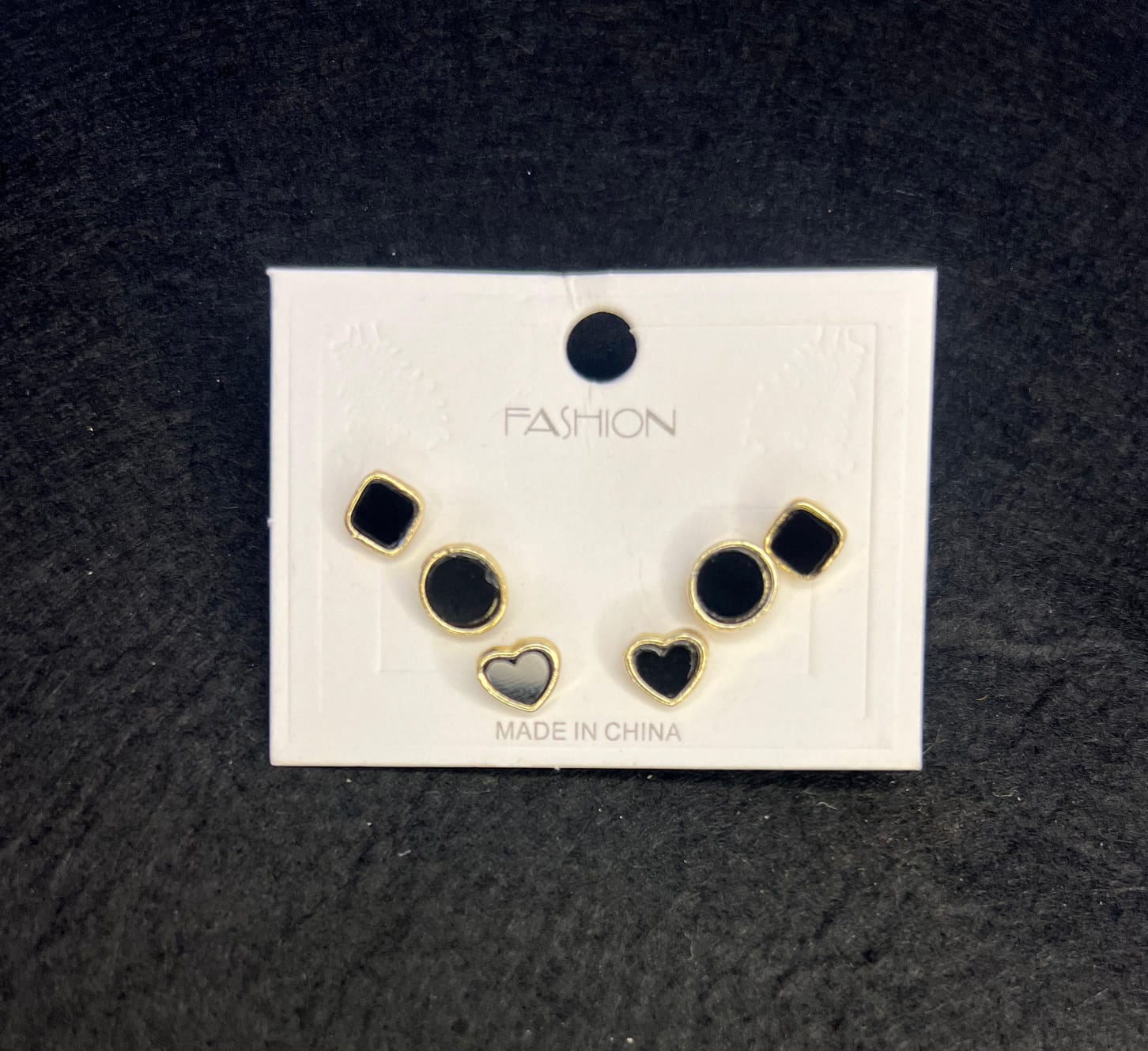 Elevate your everyday jewelry game with this charming 3-pair stainless steel stud set – a versatile collection of tiny studs in sleek black and crisp white enamel, each framed with delicate gold-plated borders for a touch of shine.